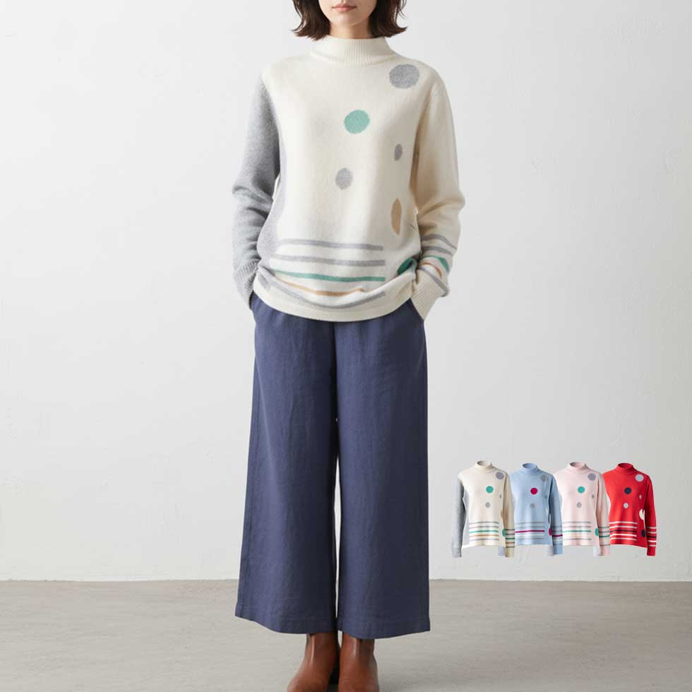 カシミヤ100%水玉&ボーダープルオーバー