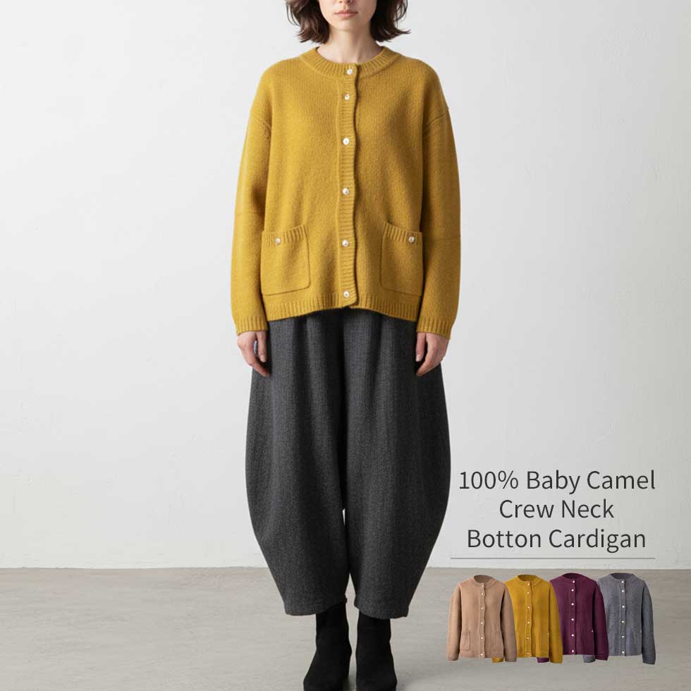 ベビーキャメル100%クルーネックカーディガン