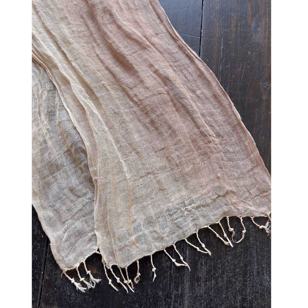 【草木染:サラッとやさしいリネンストール】アカネ|手染め|日本製|S-size|conohairo